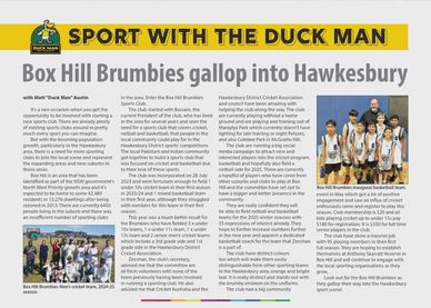 Box Hill Brumbies Cricket and sports club have started and moved into the Hawkesbury to provide more sporting opportunities for players. Published Hawkesbury Independent Dec 2024