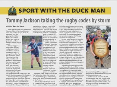 Tommy Jackson Taking the rugby codes by storm. Published Blacktown Independent Magazine Apr 2023